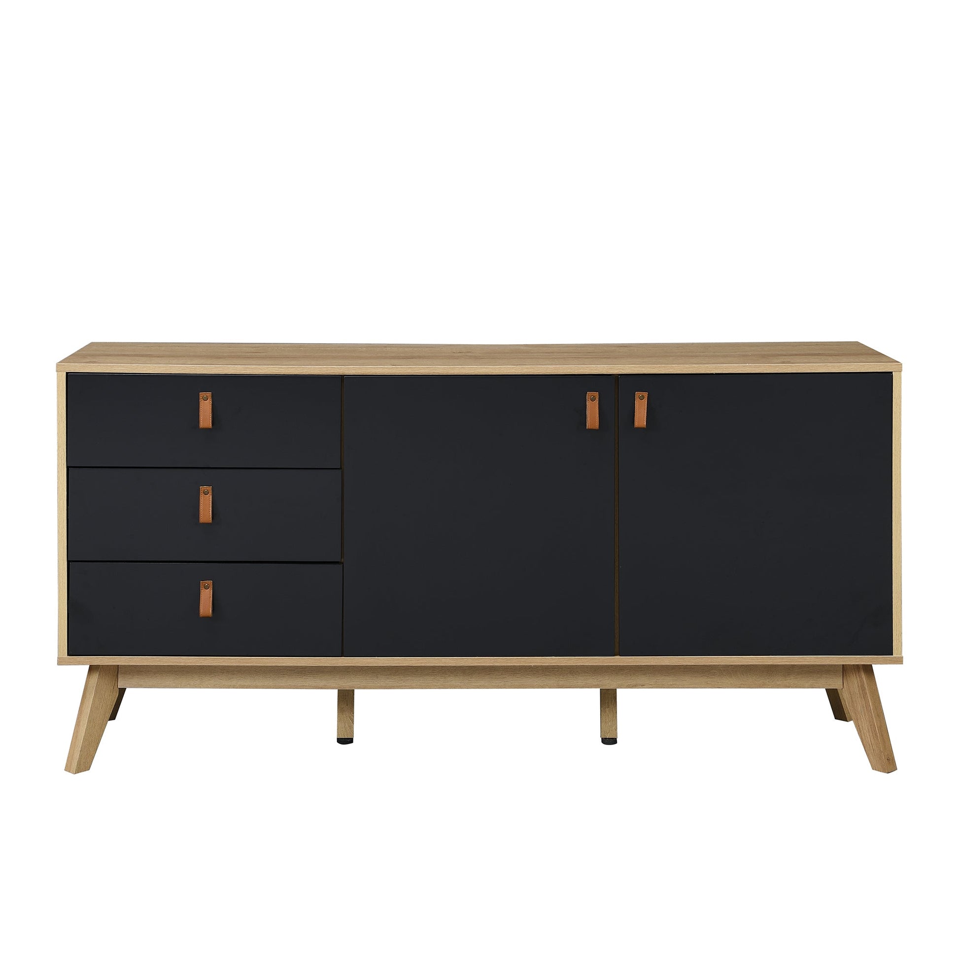 - Le buffet dispose de 2 portes et de 3 tiroirs coulissants pour désencombrer votre espace de vie.