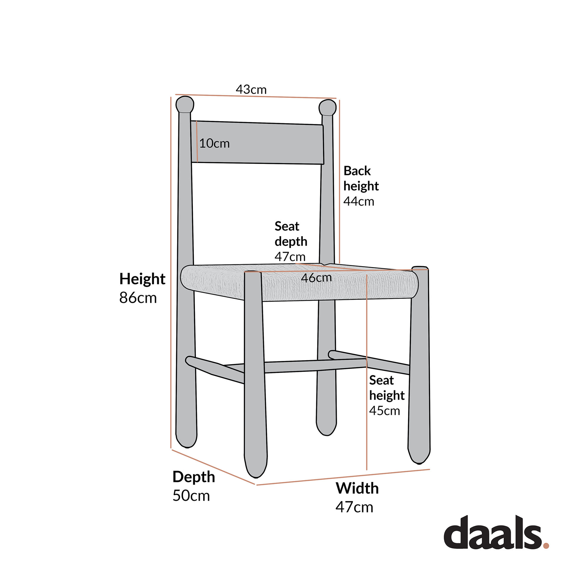 - Dimensions : L 47 x P 50 x H 86 cm. Hauteur d'assise : 45 cm.