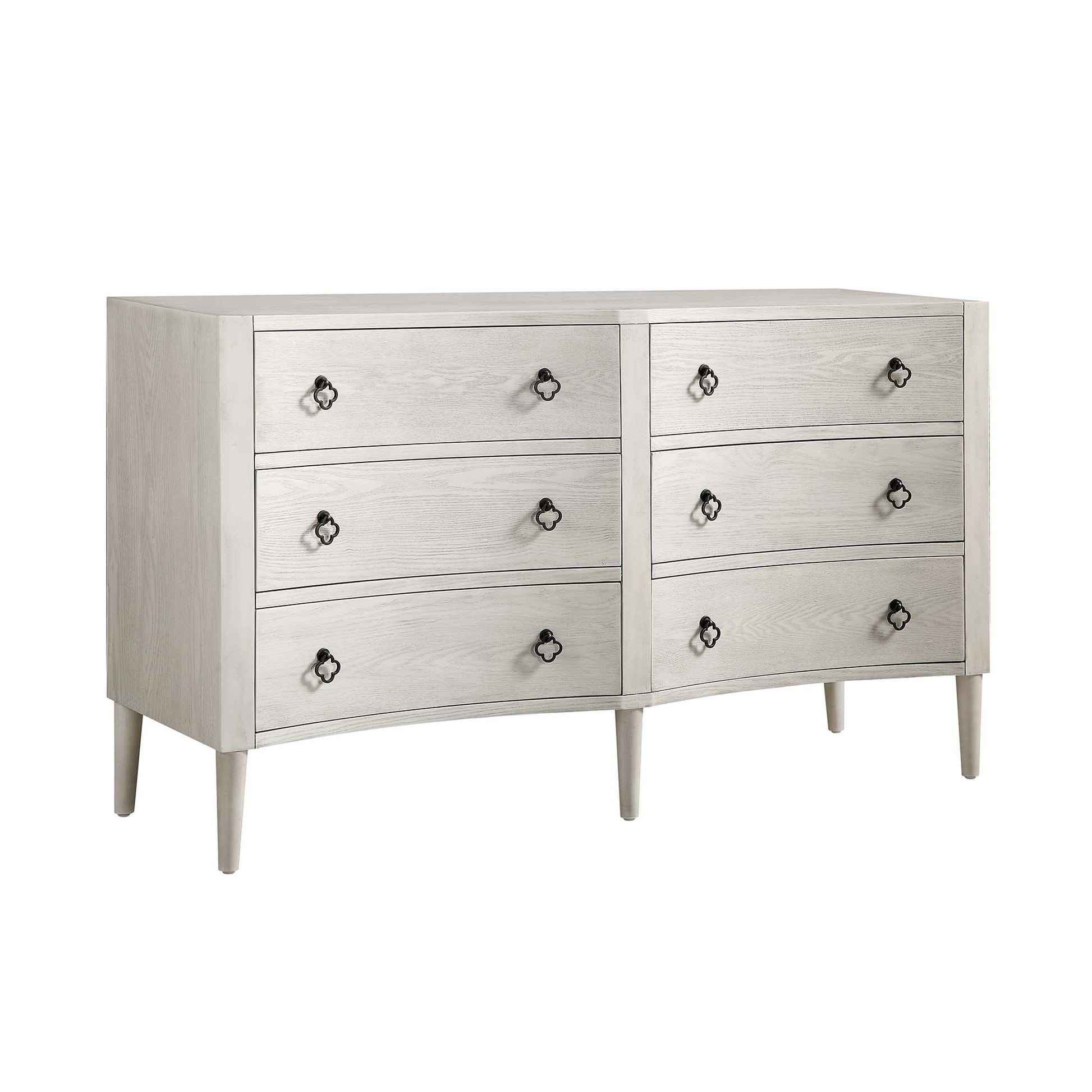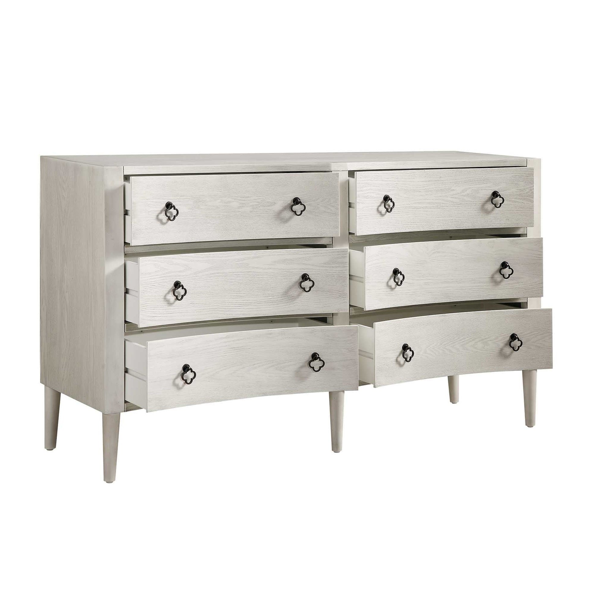 - Doté d'un design incurvé distinctif, notre commode double Thalia à six tiroirs est fabriquée en placage de frêne massif dans une belle finition blanchie à la chaux.