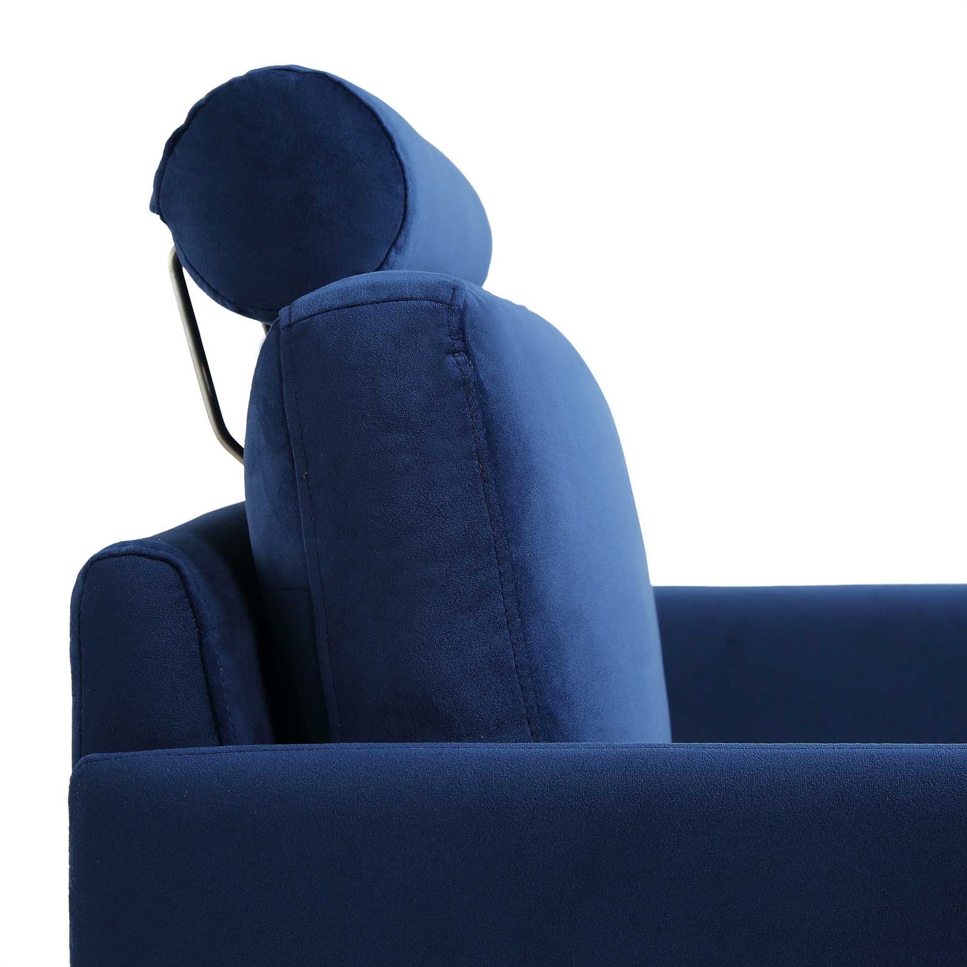 - Recouvert d'un tissu doux au toucher velours de couleur bleu marine pour un look milieu du siècle