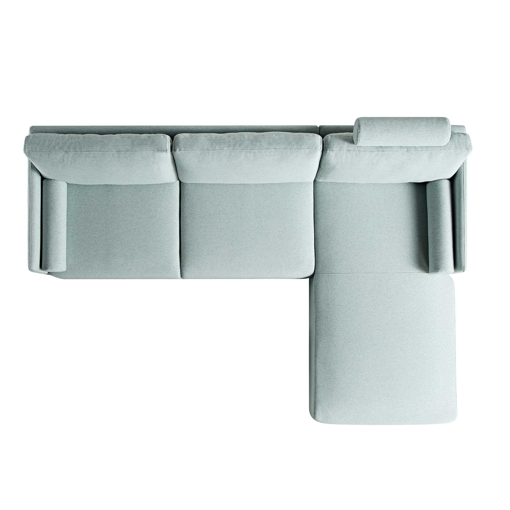 Canapé en tissu vert sauge Timber, grand canapé méridienne 3 places orienté à droite