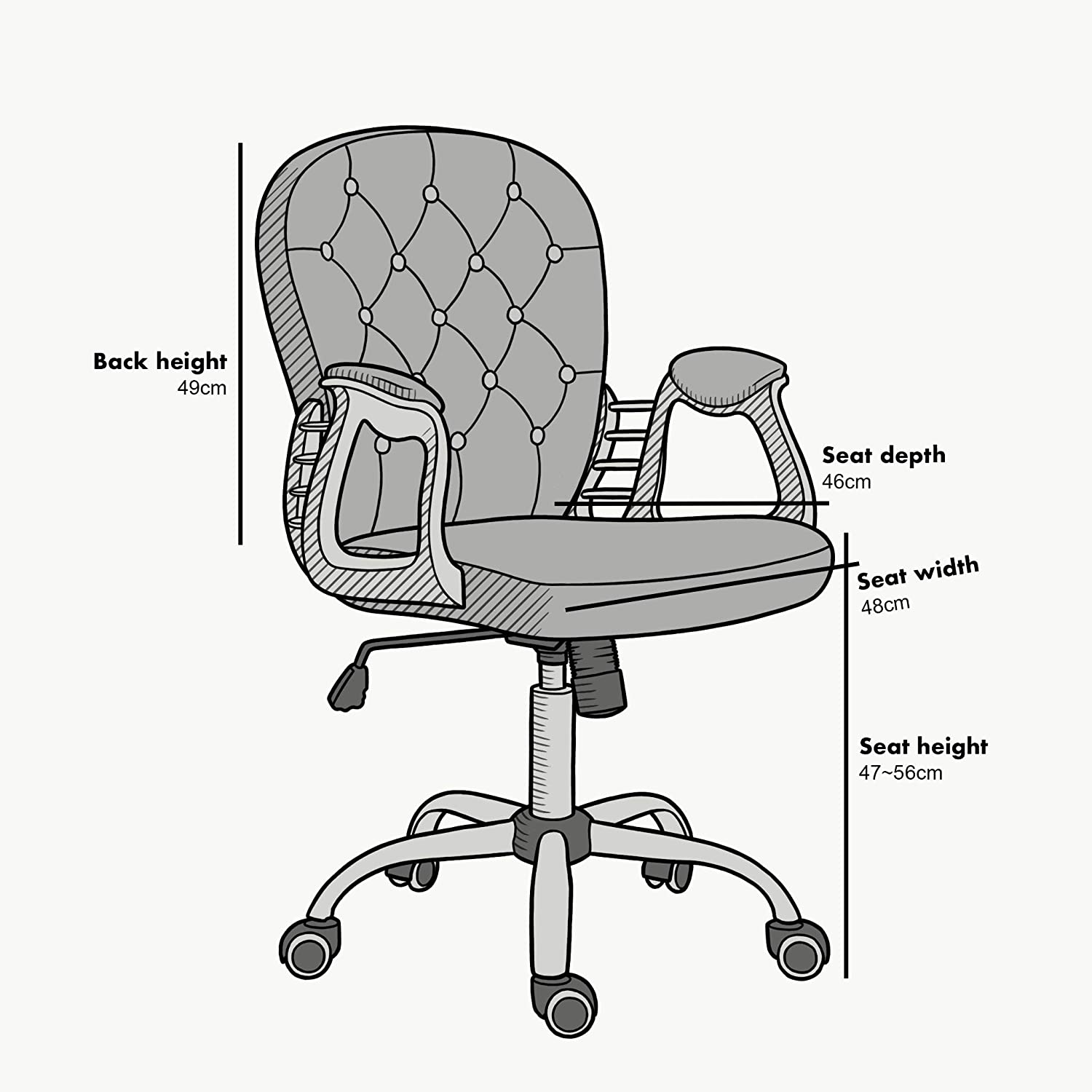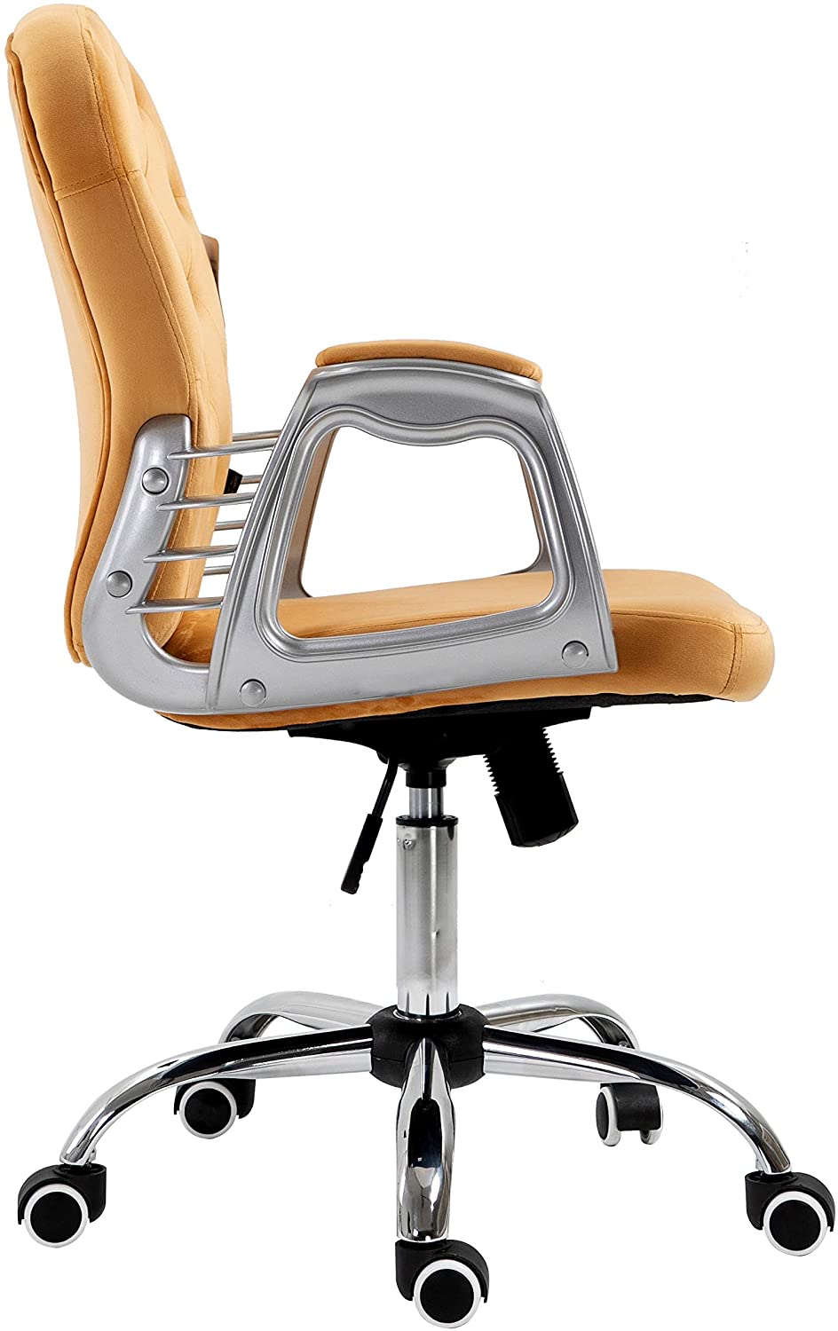 - Cette chaise de bureau élégante est dotée d'un dossier boutonné en diamant et d'un revêtement en tissu velours moelleux