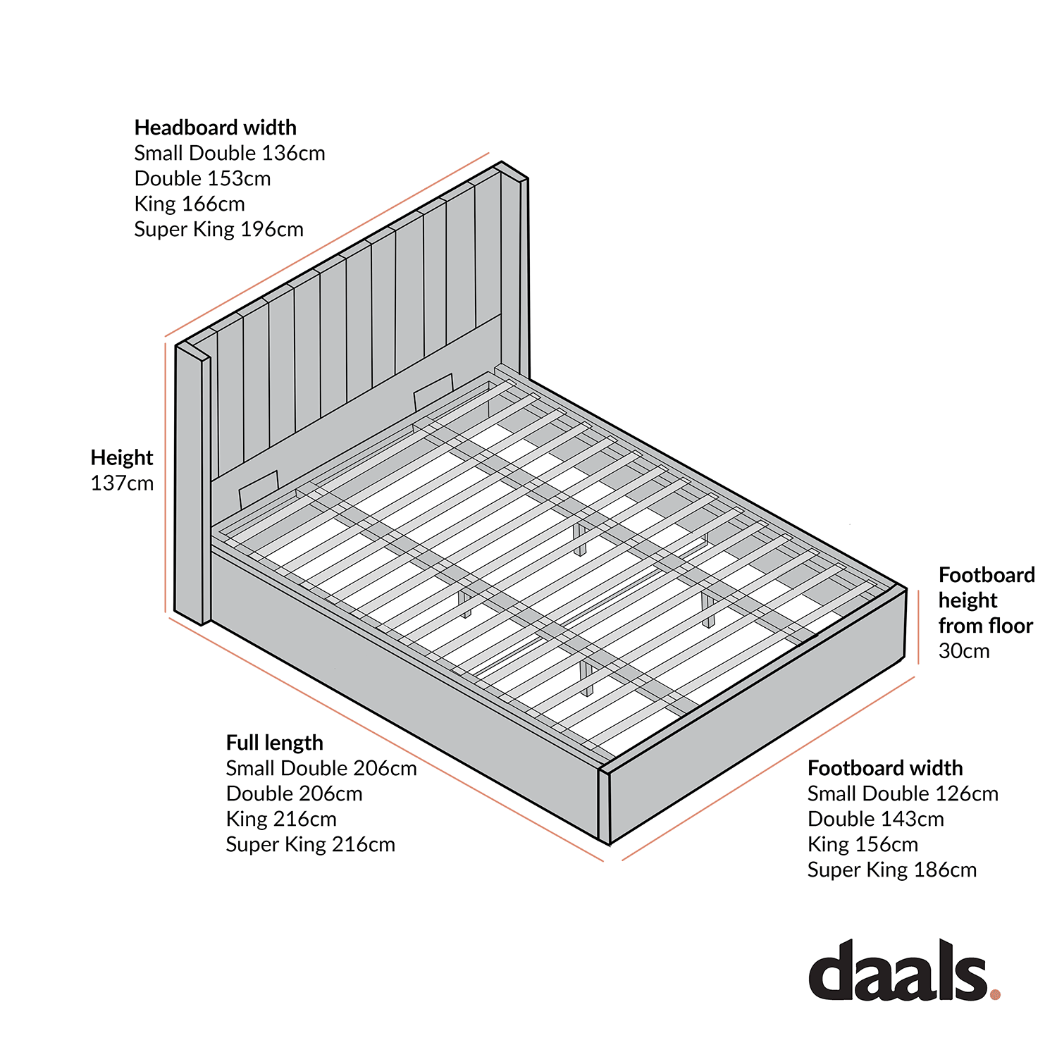 - 6FT Super King : L 196 x P 216 x H 137 cm / Poids du lit : 74,4 kg