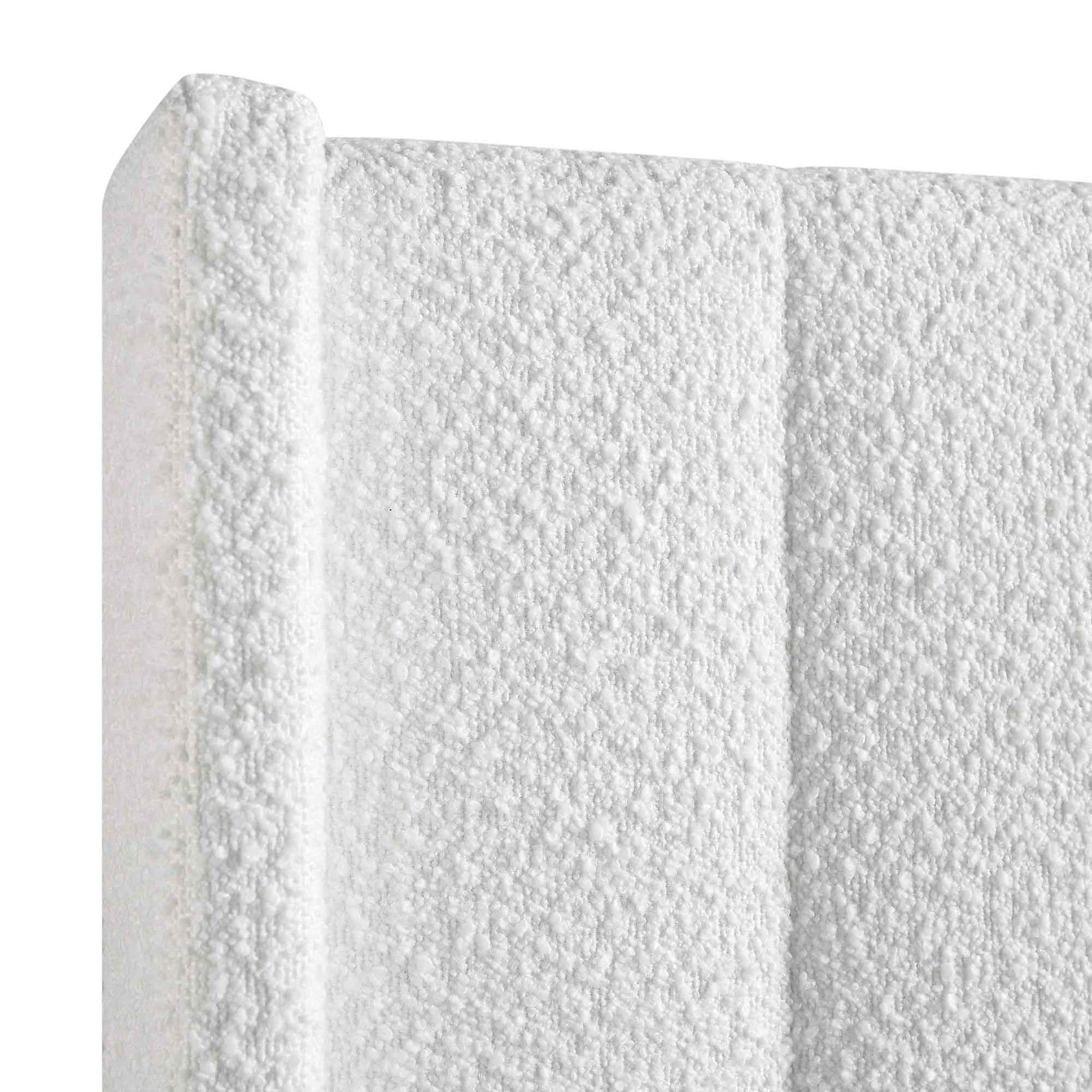 - La tête de lit rembourrée avec capitonnage vertical se marie parfaitement avec un revêtement blanc pour un look moderne et élégant.