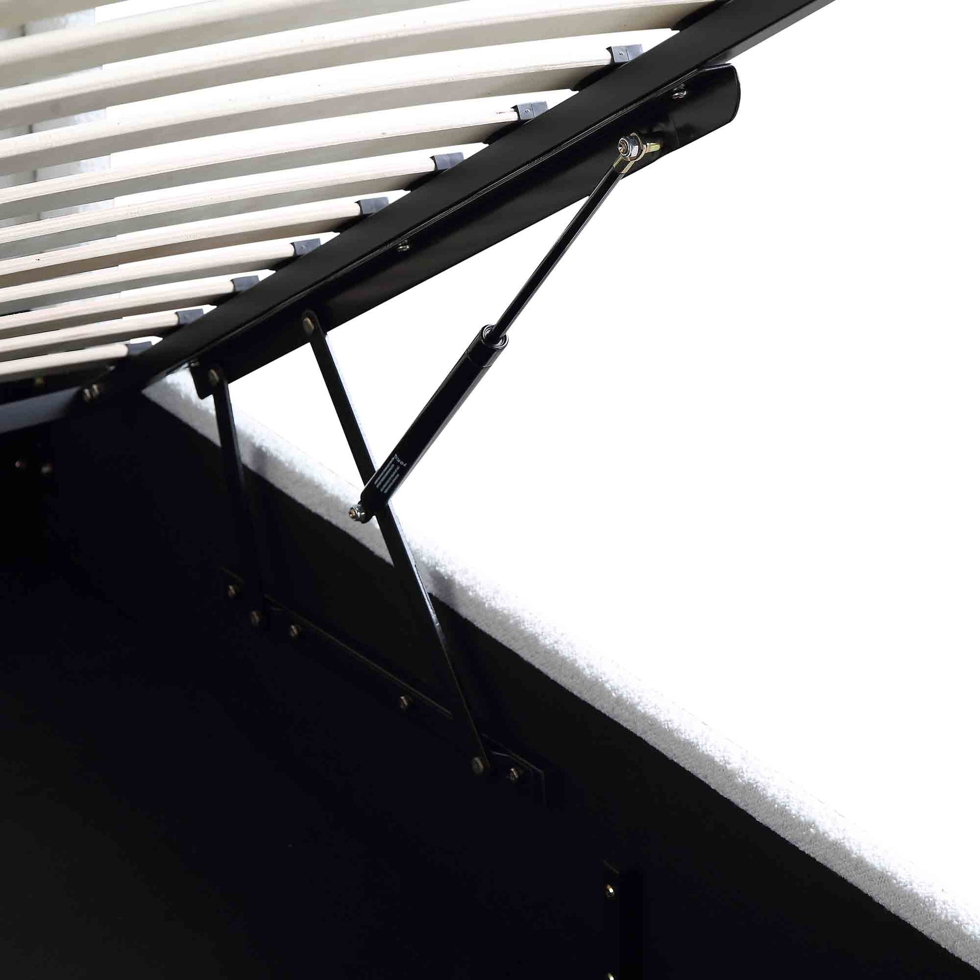 - Complétez le look : sur la photo avec notre lit de rangement ottoman Wilton White Boucle se trouve notre tapis en jute tressé à la main Aurora en bronze et bleu sarcelle