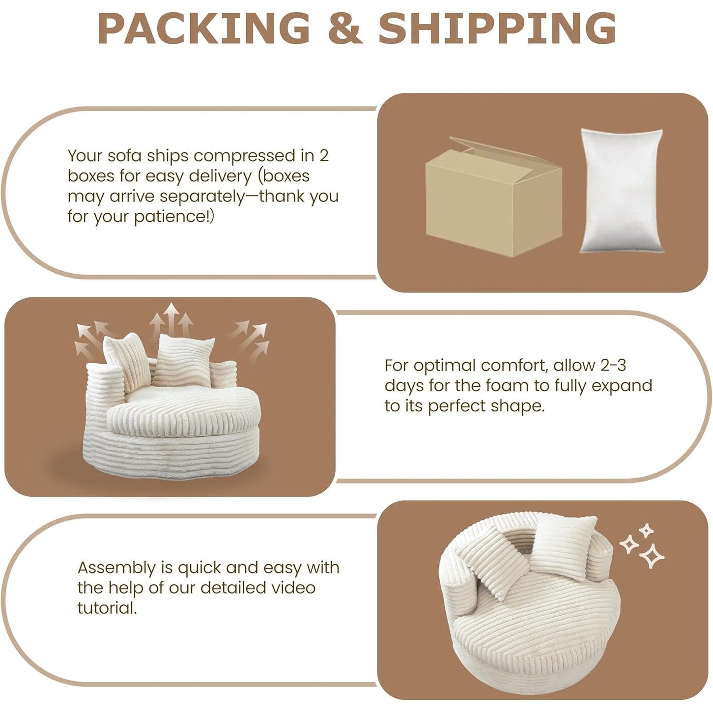 Fauteuil de jardin rond WOWMAX 47, canapé-lit surdimensionné en velours côtelé avec 2 coussins décoratifs